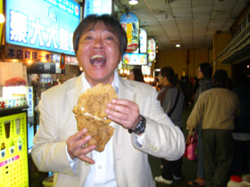 びっくりするような特大のから揚げを食べました。フライドチキンとしては世界最大だと思います。25センチから30センチぐらいあります。 私の顔と同じぐらいの大きさで、とにかくビックリです。 しかし、コレ、日本ではありません。台湾のタイペイの夜市で発見しました。 行列ができていたので、20分ほど並びました。 日本のとんかつの3枚ほどの大きさです。 デカイだけかと思いましたが味は絶品です。日本には無い味ですが・・・ 価格はなんと、日本円で150円ほど・・・円高の今がお得です。 あつっ・・・熱っっ・・・ 同じ場所で、牡蠣(カキ)の玉子焼きも食べました。コレがまた絶品! かたちはお好み焼きに似ていますが、小粒の牡蠣がいっぱい入った玉子焼きです。 これも日本円で150円ほど。 2人で行って500円もあれば十分、グルメを楽しめます。 台湾へは日本の店で売れる雑貨や文具を探しに行きましたが、いい製品はありませんでした。 やはり日本の製品が世界一です。 でも、台湾はとても親日ですし、夜市のグルメは最高です。 あなたもためしてみてください。 PR |